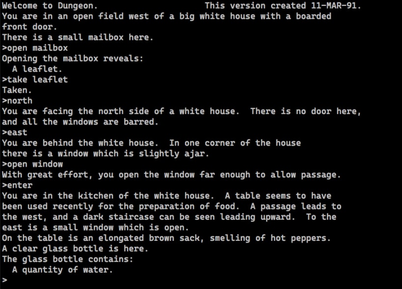Zork is a game of adventure, danger, and low cunning. In it you will explore some of the most amazing territory ever seen by mortal man. Hardened adventurers have run screaming from the terrors contained within.