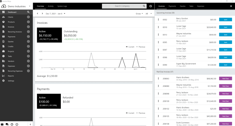 Invoice Ninja is a leading source-code available platform for SMB’s to invoice, accept payments, track expenses & time billable-tasks. Designed for freelancers and small to medium size businesses, Invoice Ninja is a suite of apps to help you get paid.