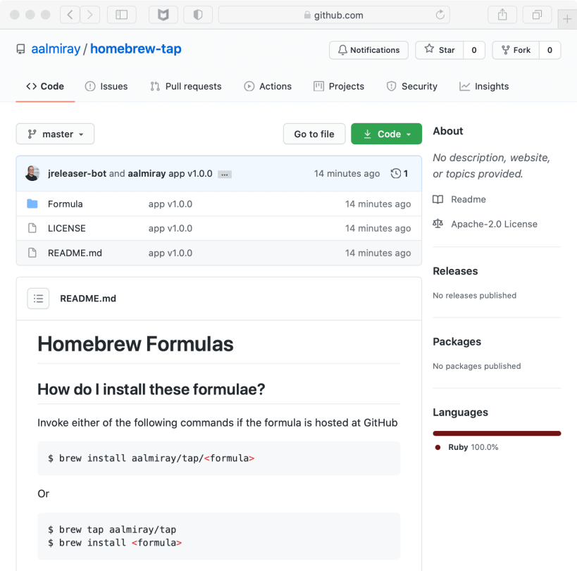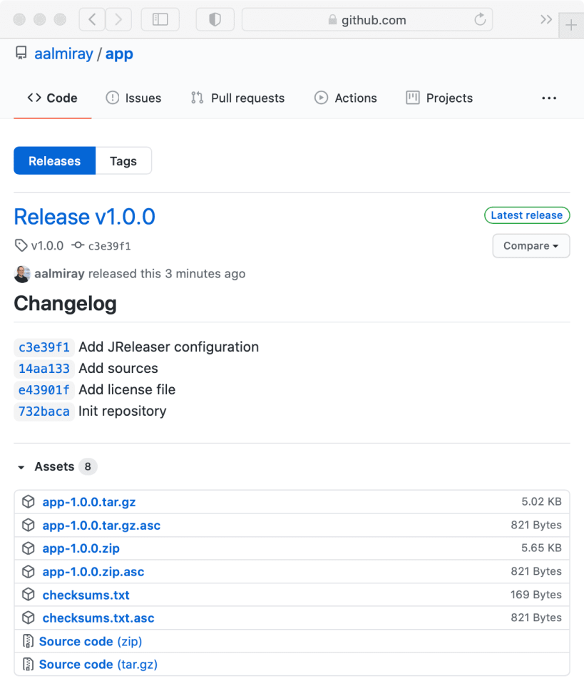 JReleaser takes inputs from popular builds tools (Ant, Maven, Gradle) such as JAR files, binary distributions (.zip, .tar), JLink images, or any other file that you’d like to publish as a Git release on popular Git services such as Github or Gitlab. Distribution files can additionally be published to be consumed by popular package managers as Homebrew, Snapcraft, or get ready to be launched via Jbang. Releases may be announced in a variety of channels such as Twitter, Zulip, or SDKMAN!