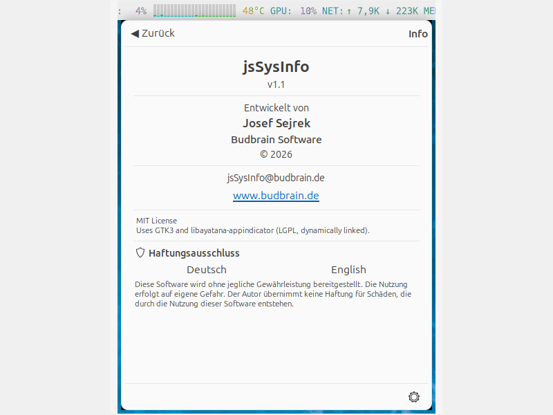 Developed by Josef Sejrek / Budbrain Software Contact: jsSysInfo@budbrain.de | www.budbrain.de