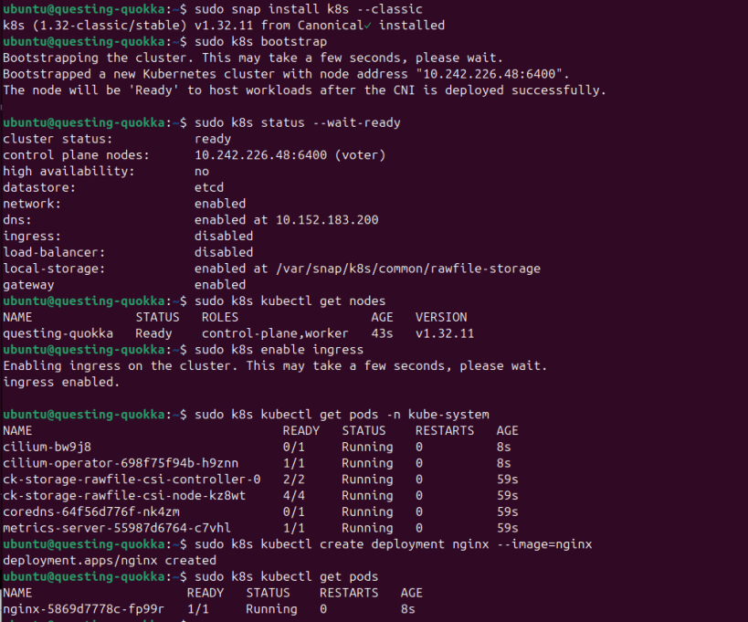 sudo snap install k8s --classic