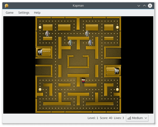 You must run through the maze to eat all pills without being captured by a ghost. By eating an energizer, Kapman gets the ability to eat ghosts for a few seconds. When a stage is cleared of pills and energizer the player is taken to the next stage with slightly increased game speed.