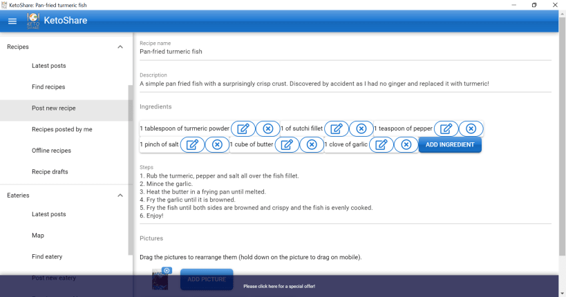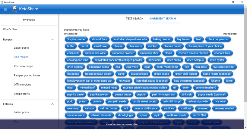 A recipe and eatery sharing app for the Keto community, starting from Singapore and Malaysia, and then to the rest of the Keto world. We hope that this can become a global resource!