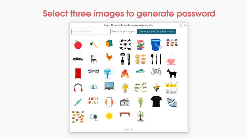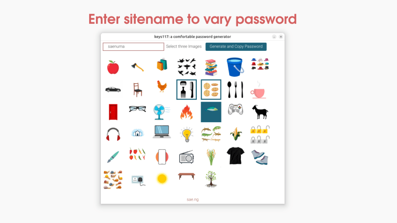 Keys117 doesn't store passwords, you are to remember the images picked.