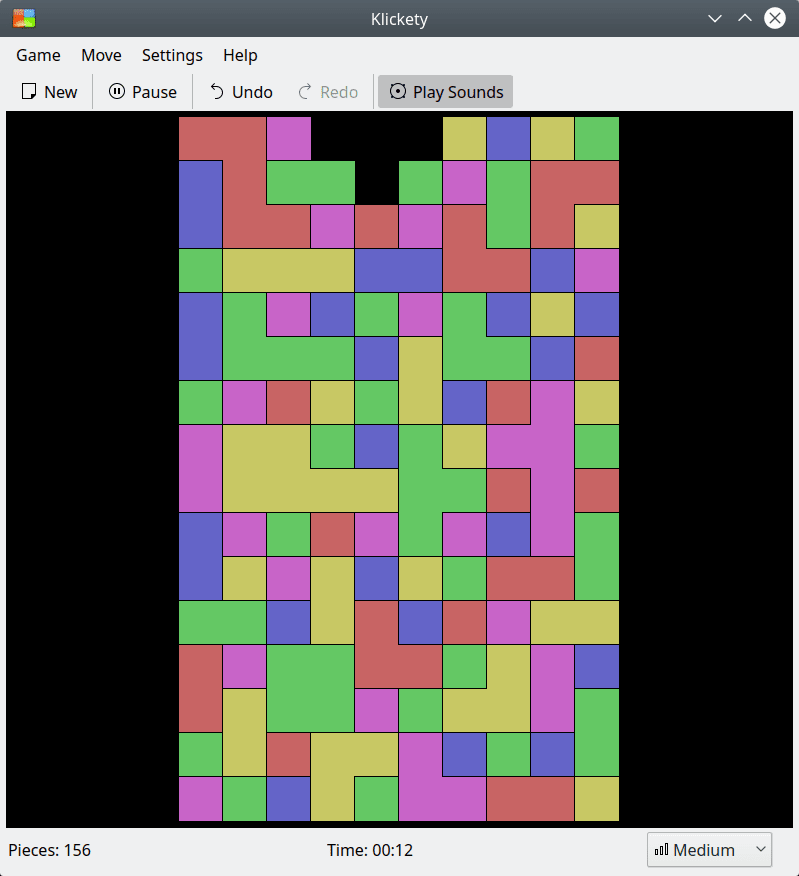 Klickety is a puzzle game where the player removes groups of colored marbles to clear the board.