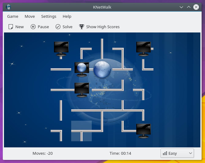 KNetwalk is a puzzle game where the player arranges sections of wire to connect all the computers on the board.