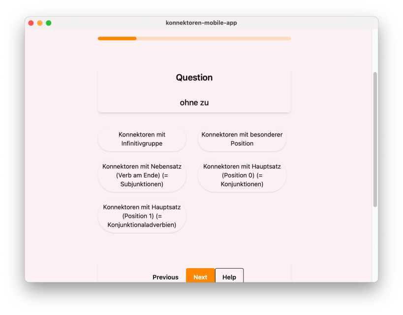Konnektoren is a language learning app for German learners. It is designed to help you learn German conjunction and other grammar topics.