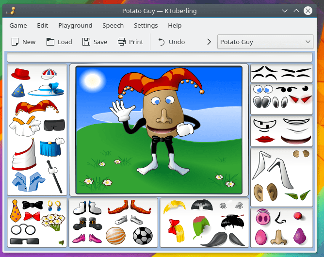 KTuberling can speak the name of each the object in several languages, to assist in learning basic vocabulary.