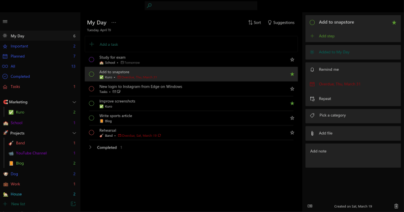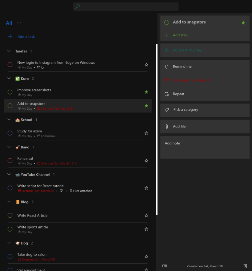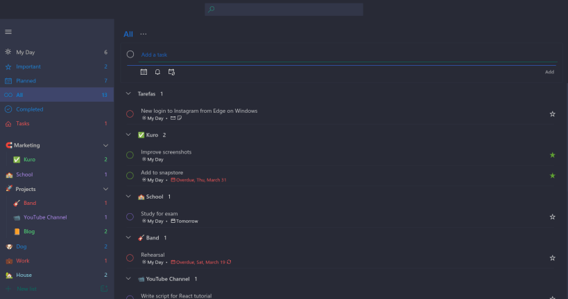 Kuro is an open source desktop client for Microsoft To-Do with multiple themes, keyboard shortcuts and other features:
