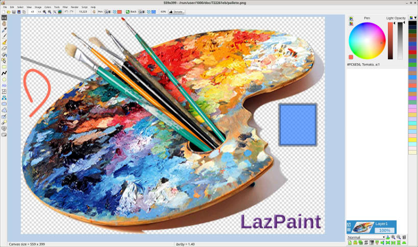 Free cross-platform image editor with raster and vector layers, written in Lazarus (Free Pascal).