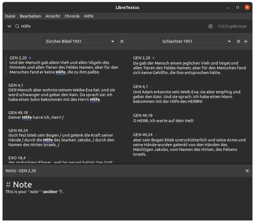 LibreTextus is a powerful Bible reader. Those are its current features: