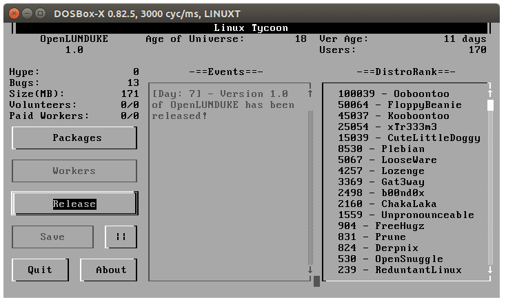 Linux Tycoon is the premier Linux Distro Building Simulator game in the universe. Here are some examples of the thrilling challenges you’ll find in Linux Tycoon