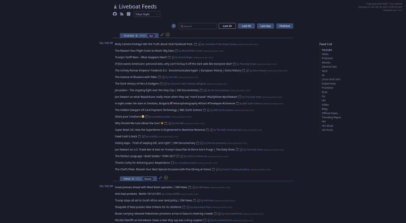 Liveboat is a static page generator which turns Newsboat RSS reader feed data into beautiful static websites.