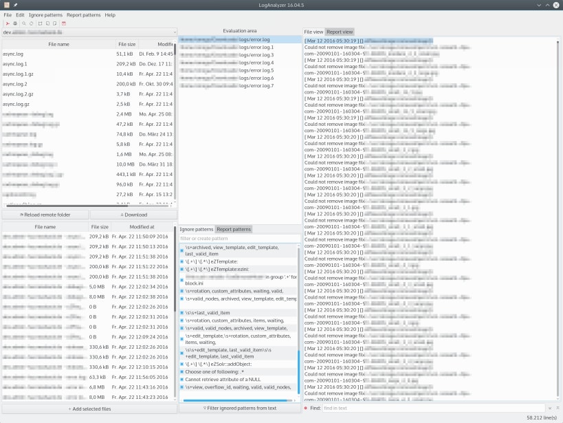 LogAnalyzer is a tool that helps you analyzing your log files by reducing the content with regular expression patterns you define. https://github.com/pbek/LogAnalyzer