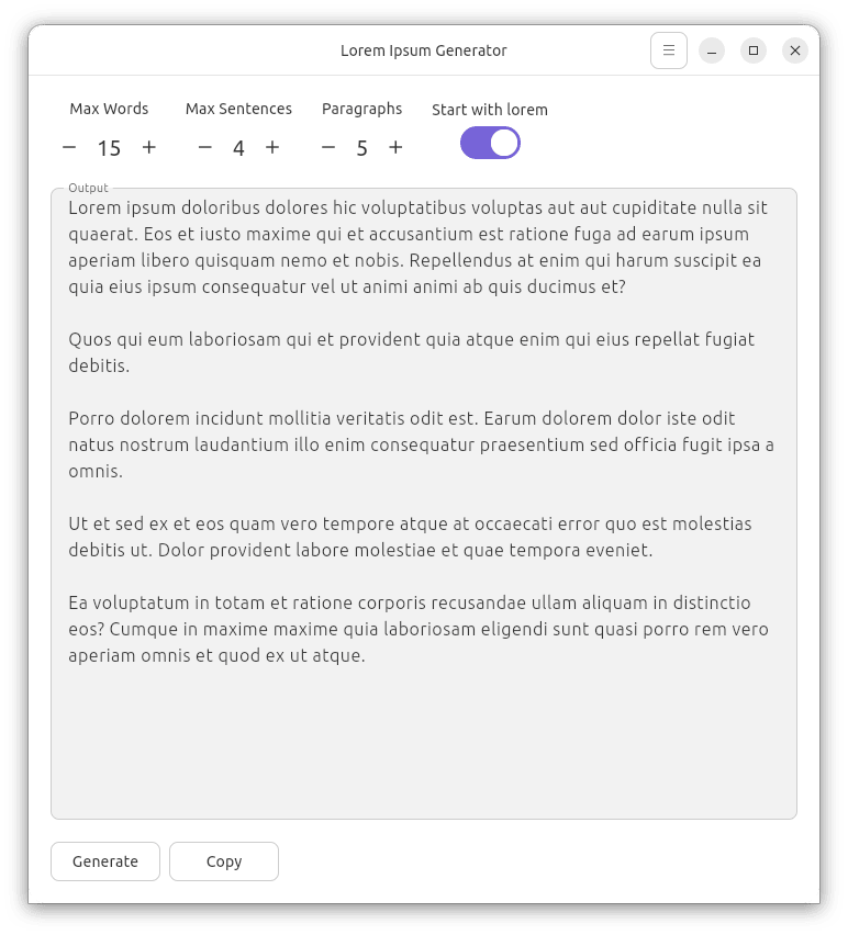 A simple and configurable Lorem Ipsum generator built with Flutter.