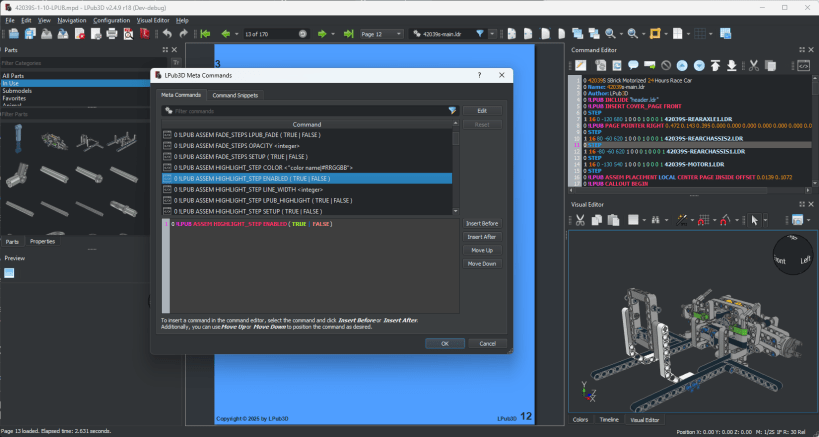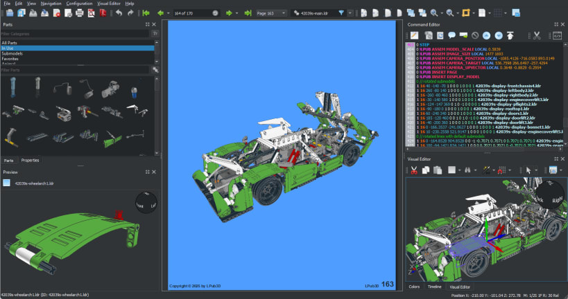 LPub3D is an Open Source WYSIWYG editing application for creating LEGO® style digital building instructions. LPub3D is developed and maintained by Trevor SANDY. It uses the LDraw™ parts library, the most comprehensive library of digital Open Source LEGO® bricks available (www.ldraw.org/ ) and reads the LDraw LDR and MPD model file formats. LPub3D is available for free under the GNU Public License v3 and runs on Windows, Linux and macOS Operating Systems. LPub3D is also available as a Linux 'no-install', multi-platform AppImage. Portions of LPub3D are based on LPUB© 2007-2009 Kevin Clague, LeoCAD© 2025 Leonardo Zide and additional third party components. LEGO® is a trademark of the LEGO Group of companies which does not sponsor, authorize or endorse this application. © 2015-2025 Trevor SANDY