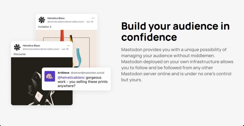 Mastodon is a free, open-source social network server based on ActivityPub where users can follow friends and discover new ones. On Mastodon, users can publish anything they want: links, pictures, text, video. All Mastodon servers are interoperable as a federated network (users on one server can seamlessly communicate with users from another one, including non-Mastodon software that implements ActivityPub!)