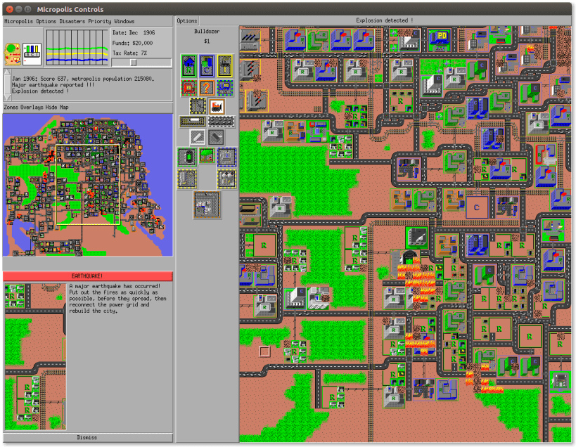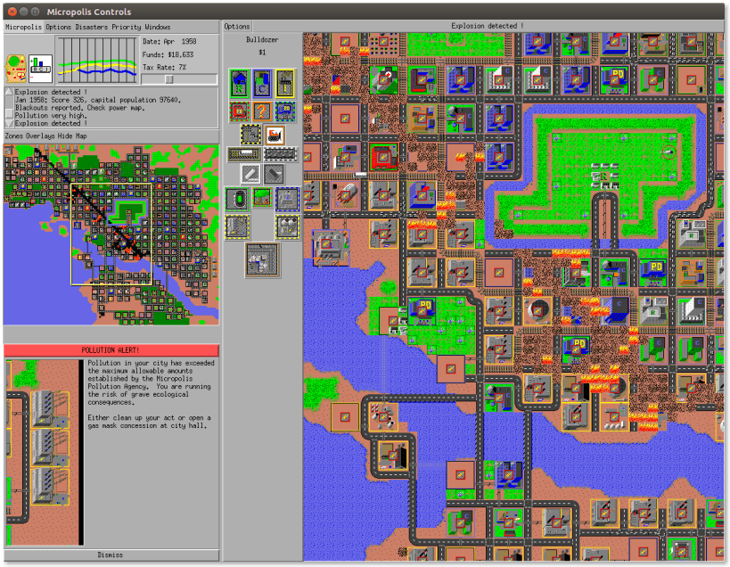 Micropolis, the original award winning city simulation game from Maxis Software, now runs on powerful Unix workstations with X11! Now it's souped up, and even supports networked multi user collaboration! Multi Player Micropolis is designed to be a fun cooperative educational experience!