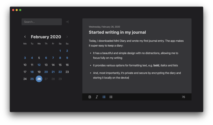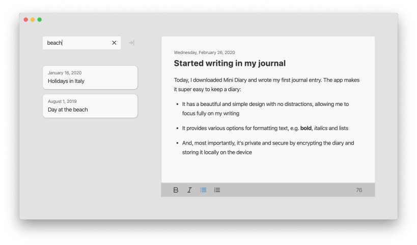 SIMPLE AND INTUITIVE Mini Diary features a beautiful and clean design with no distractions, letting you fully focus on your writing.