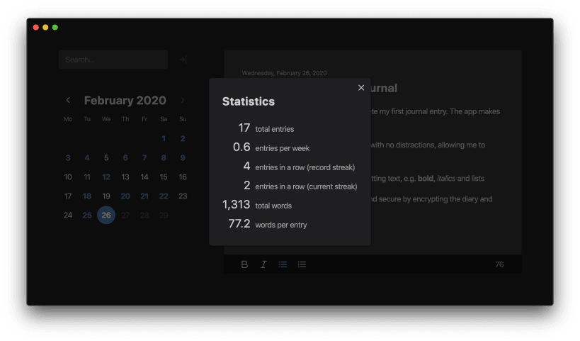PRIVATE AND SECURE You're in control of your data. The journal is encrypted with a password and stored locally on your device.