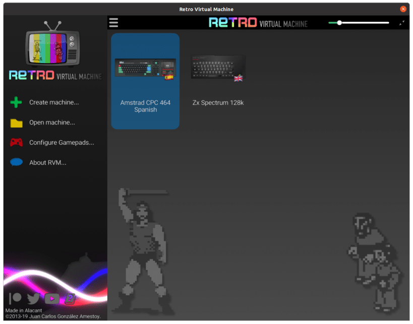 Retro Virtual Machine is an Amstrad and Spectrum emulator that not only offers the capacity of emulating old machines, but also reproduces the old CRT look and feel as well as the sounds of our beloved old machines.