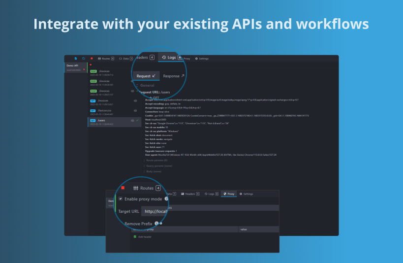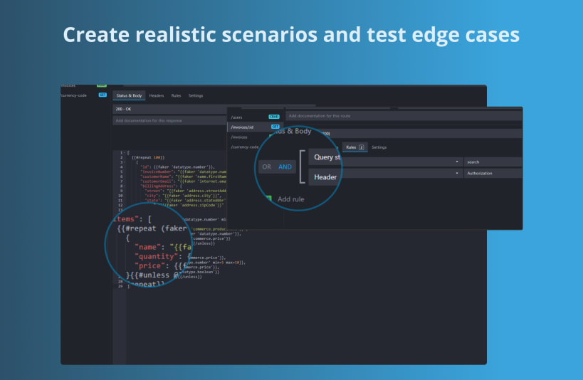 It combines a desktop application to design and run mock servers locally, and a CLI (https://mockoon.com/cli/) to self-host your fake APIs. A cloud (https://mockoon.com/cloud/) is also available to collaborate with your team, keep your data in sync, and deploy your mock APIs.