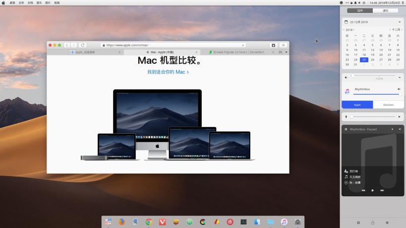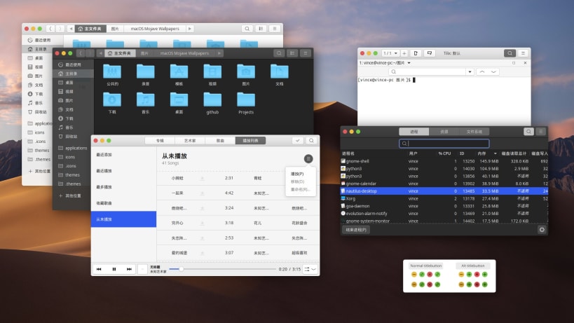 These are the Mojave GTK and icon themes for snaps. Mojave like themes which supports GTK 3 and GTK 2 based desktop environments like Gnome, Unity, Budgie, Pantheon, Cinamon, XFCE, Mate, etc. This snap provides the GTK themes in a form that can be used by other snapped applications.