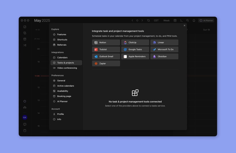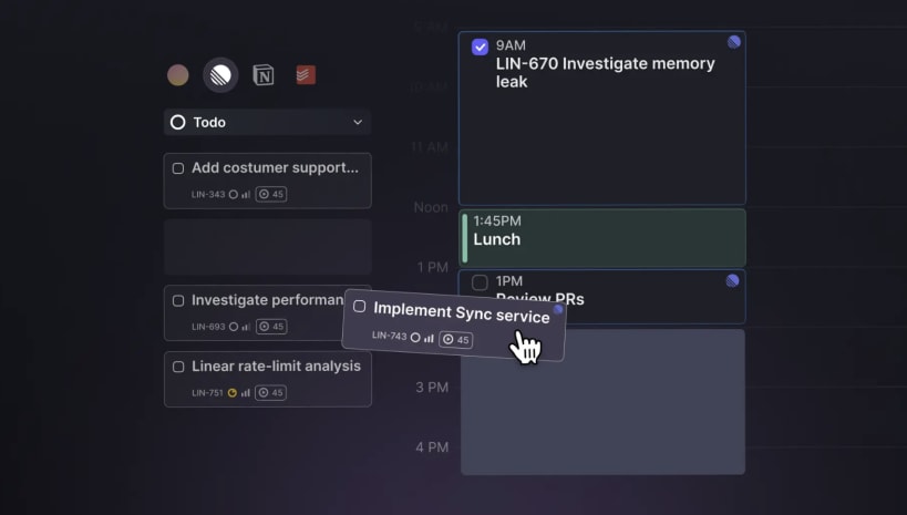 Morgen is a daily planner that transforms your calendar into a focused productivity hub. Plan your day with precision by time-blocking tasks from all your favorite tools—like Notion, Todoist, ClickUp, Obsidian, and more, right inside your connected calendars.