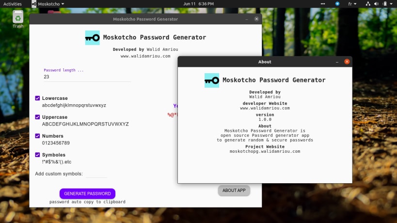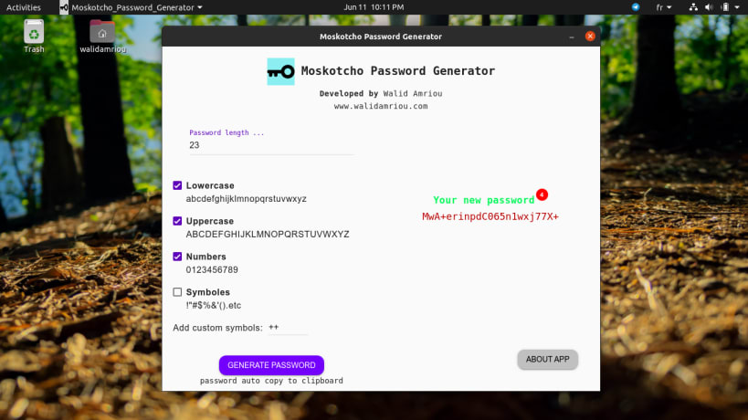 By Moskotcho Password Generator you can generate random & secure passwords. You can choose the length of the password, Customize their contents (Lowercase, Uppercase, Numbers, and Symbols ).