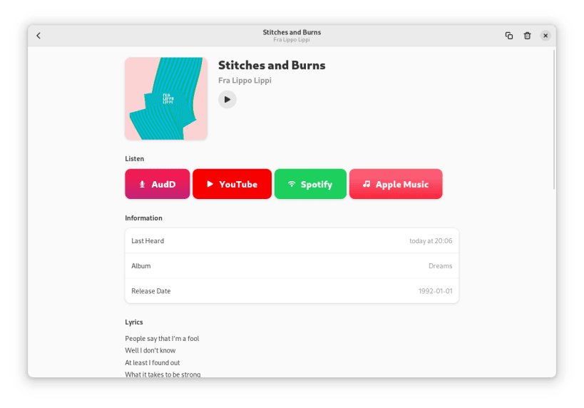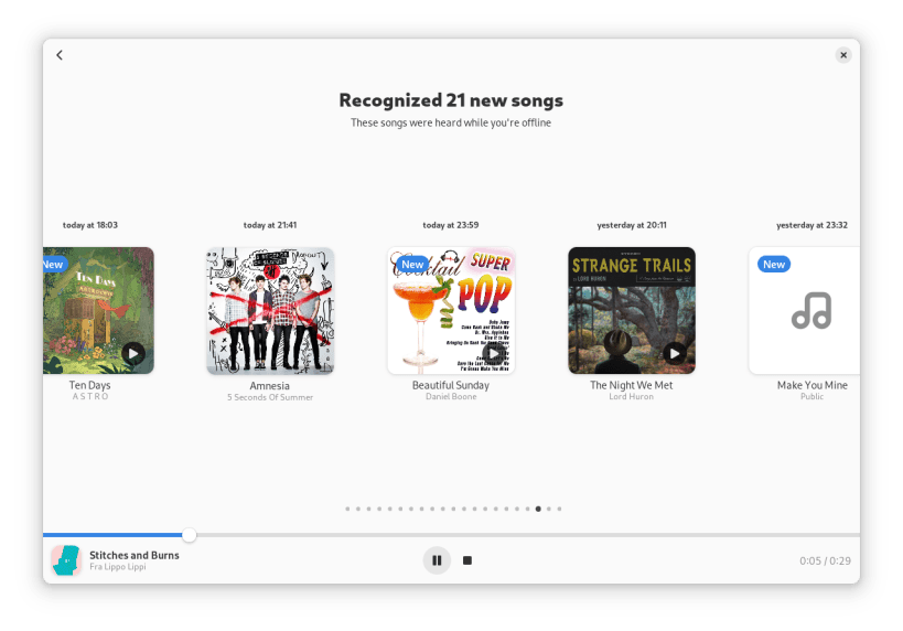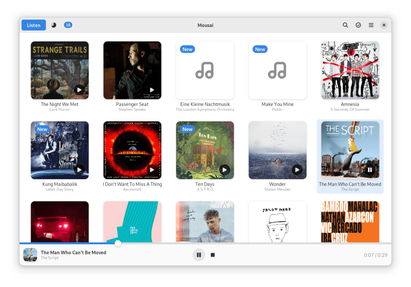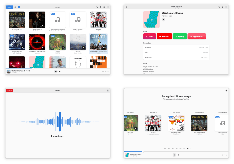 Mousai is a simple application that can recognize songs similar to Shazam. Just click the listen button, and then wait a few seconds. It will magically return the title and artist of that song!