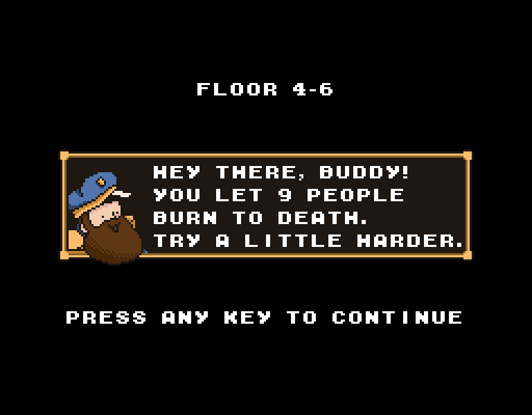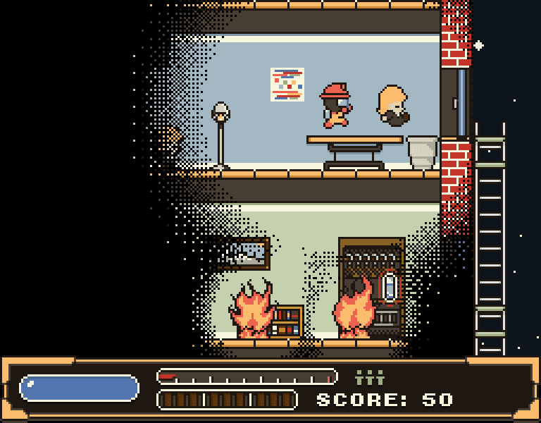 The game features fast paced fire extinguishing action, intense boss battles, a catchy soundtrack and lots of throwing people around in pseudo-randomly generated buildings.