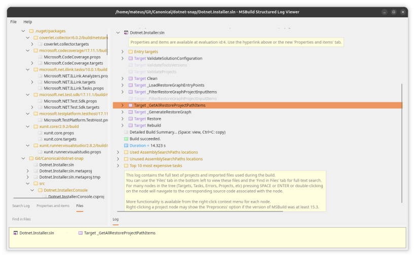 A logger for MSBuild that records a structured representation of executed targets, tasks, property and item values. It can greatly simplify build investigations and provides a portable log interchange format (*.binlog) and a rich interactive log viewer app.