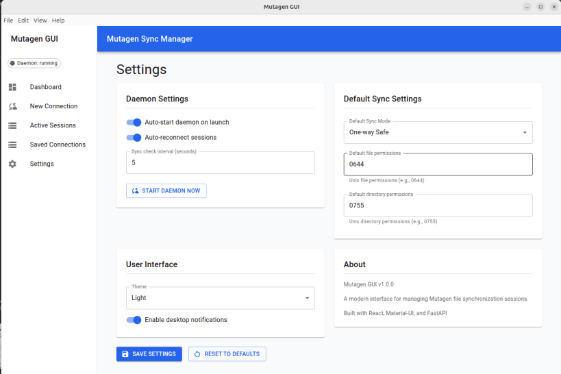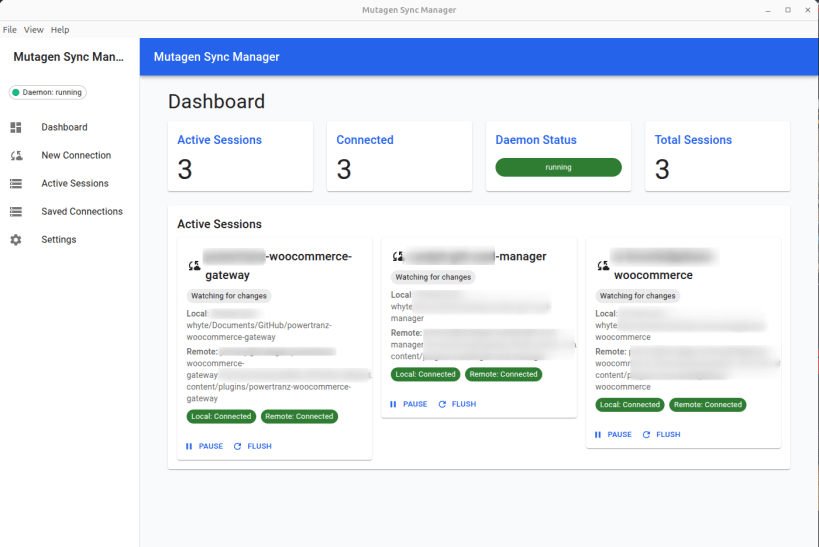 Mutagen Sync Manager is a modern desktop application for managing Mutagen file synchronization sessions with an intuitive graphical interface.