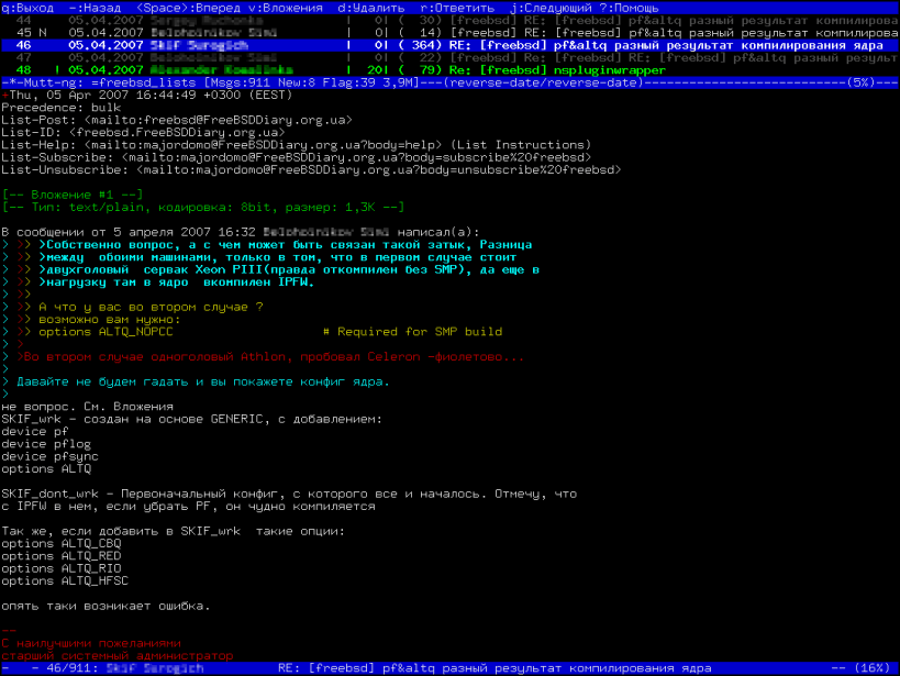 Mutt is a sophisticated text-based Mail User Agent. Some highlights