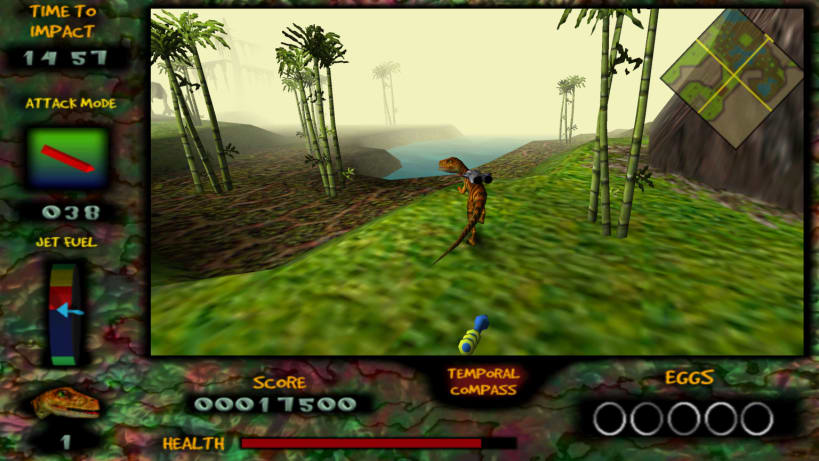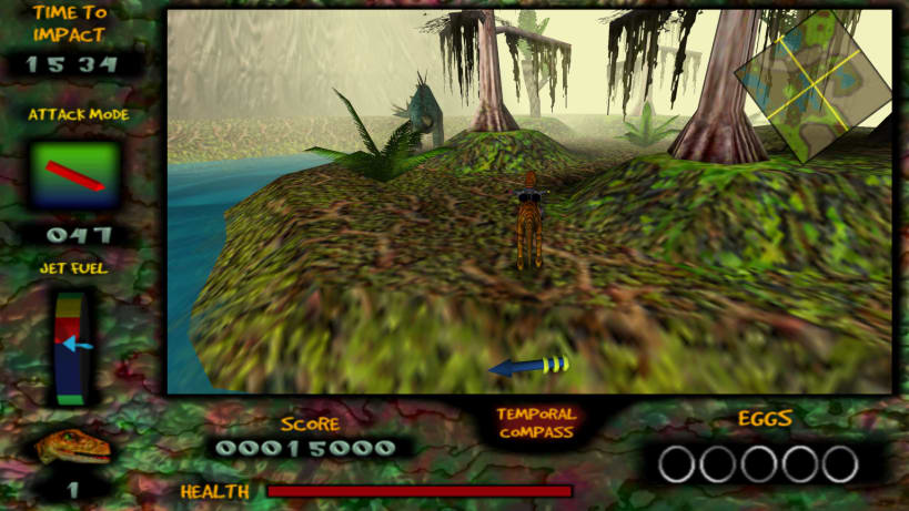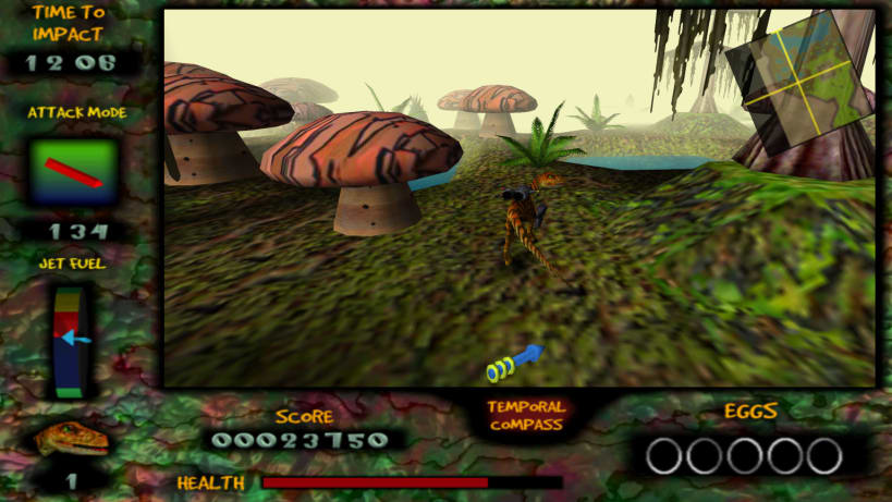 Being a dinosaur from the future, you are equipped with several pieces of technology to help you in your mission: