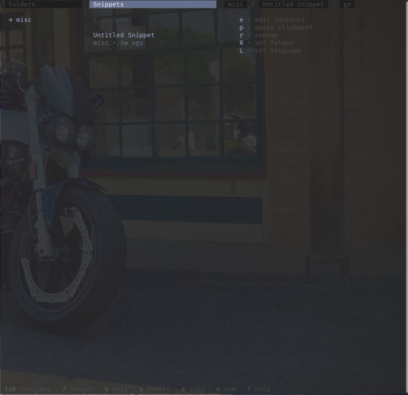 Nap is a code snippet manager for your terminal. Create and access new snippets quickly with the command-line interface or browse, manage, and organize them with the text-user interface.