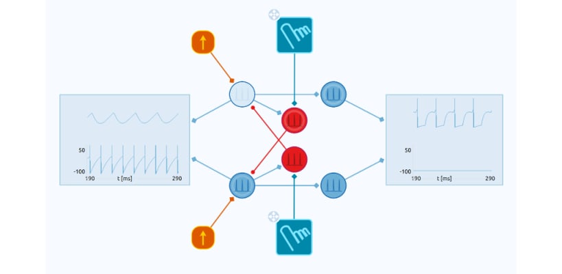 Neuronify is an educational tool meant to create intuition for how neurons and neural networks behave. You can use it to combine neurons with different connections, just like the ones we have in our brain, and explore how changes on single cells lead to behavioral changes in important networks.