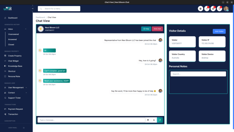 Nexi Bloom Chat is a real-time communication platform developed by Nexi Bloom LLC, a full-service digital agency and SaaS ecosystem. This smart chat solution enables businesses to connect instantly with website visitors, deliver personalized support and turn every interaction into an opportunity for trust.