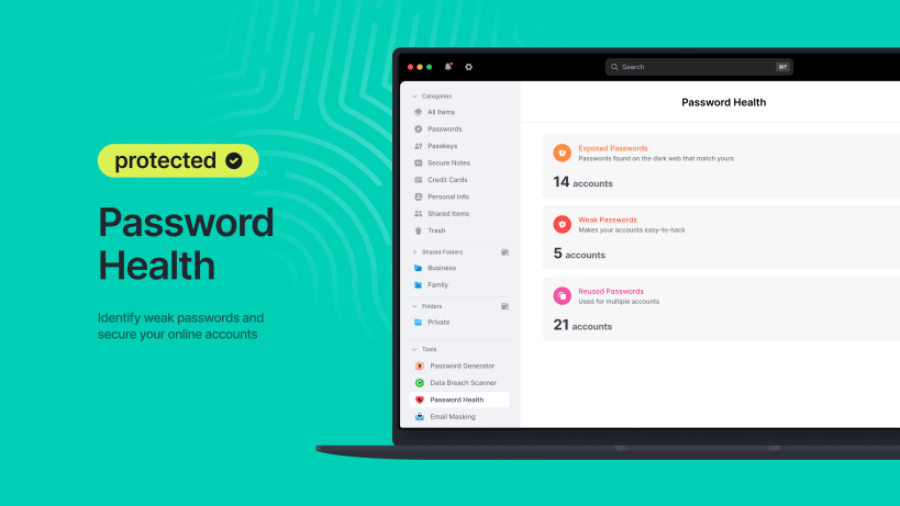 ➡️ Password Health Identify weak, old, and reused passwords with the dedicated Password Health tool.