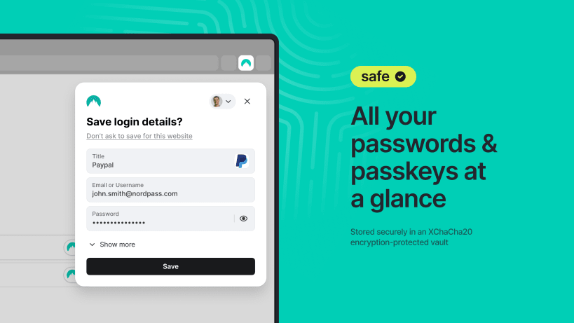 Designed by the security experts behind NordVPN, the NordPass password manager offers a refined yet user-friendly approach to password management. Effortlessly generate strong passwords, identify weak passwords, discover whether your data has appeared in a data breach, and benefit from the convenience of our autosave and autofill features. But there’s more to NordPass than meets the eye. Beyond passwords, trust NordPass to store your passkeys, credit cards, personal notes, and even files with 3GB of storage reserved just for that.