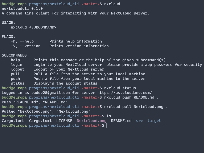 A command line interface client to interact with a NextCloud server. It makes it possible to push and pull files between a client and a NextCloud server without the need of a GUI.