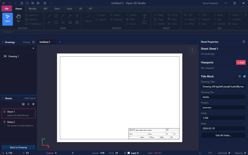 Open 2D Studio is a free, open-source 2D CAD application built for architects, engineers, and designers who need professional drafting tools without expensive subscriptions.