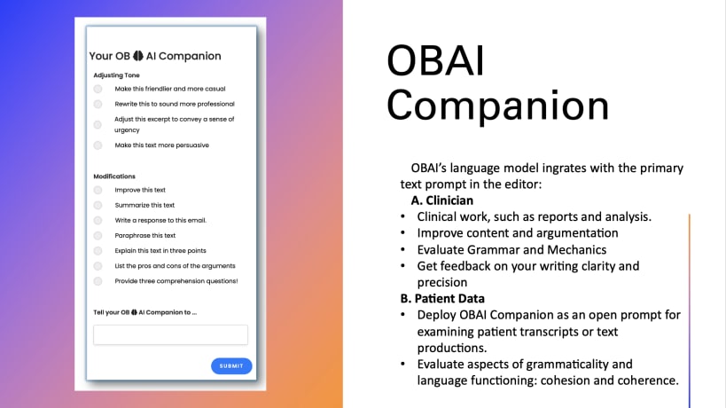 Open Brain AI supports users with AI-driven language analysis, audio transcription, and automatic language measures. It asssists teachers and students with personalized learning and aiding researchers in understanding complex language-related conditions. It support speech and language pathologists to provide better care to their patients.