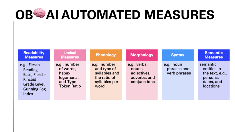 Overall, Open Brain AI's intuitive language analysis tools streamline workflows for teachers, clinicians, and researchers. Effortlessly gain insights to support teaching, diagnosis, treatment monitoring, and understanding of aphasia, dementia, and developmental language conditions.