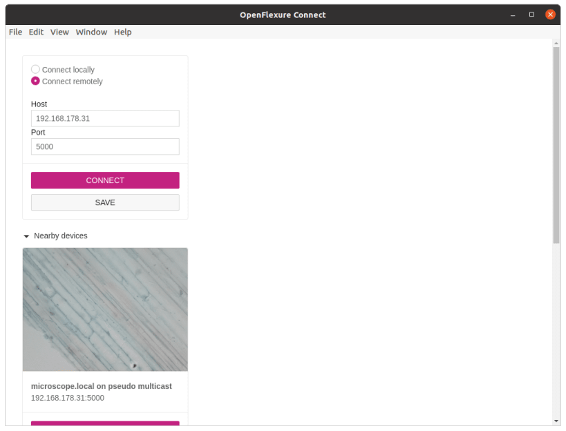 Enables automatic discovery of nearby microscopes, capture management, and microscope debugging from a single interface.