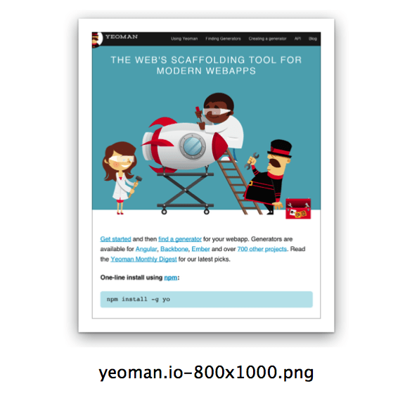Capture screenshots of websites in various resolutions. A good way to make sure your websites are responsive. It's speedy and generates 100 screenshots from 10 different websites in just over a minute. It can also be used to render SVG images.