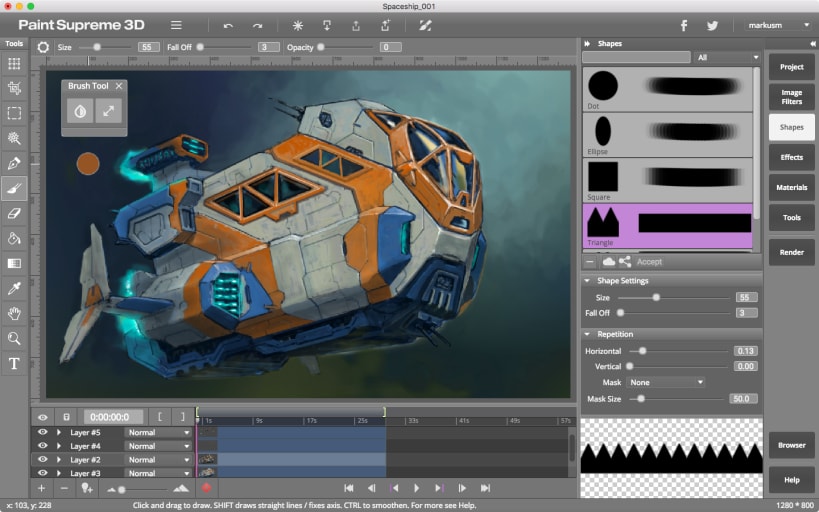 PaintSupreme 3D has all the traditional tools you love from other digital painting and image editing packages, like a magic wand tool, powerful selections and high-quality brushes.