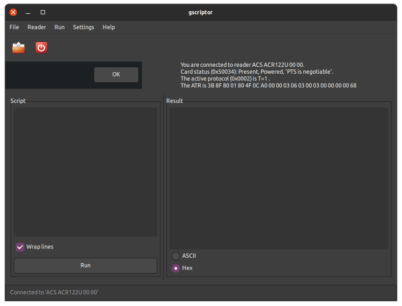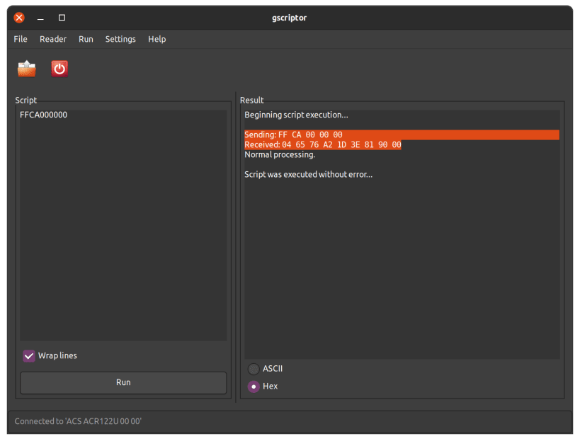 gscriptor is a program that sends commands to a smart card using a batch file.