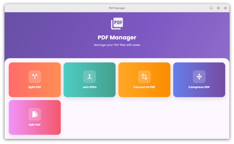 PDF Manager is a beautiful and easy-to-use application for managing your PDF files.
