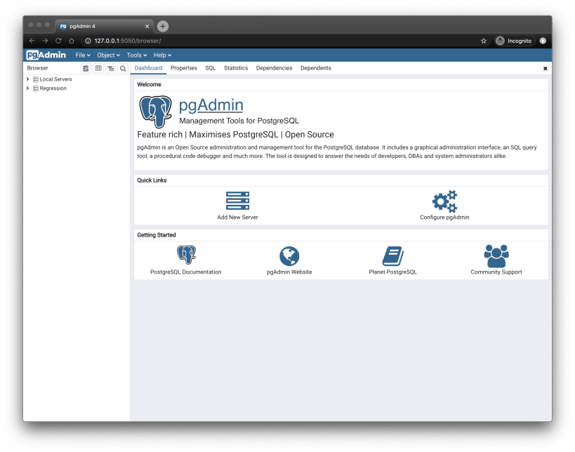 pgAdmin is the leading Open Source management tool for Postgres, the world’s most advanced Open Source database. pgAdmin 4 is designed to meet the needs of both novice and experienced Postgres users alike, providing a powerful graphical interface that simplifies the creation, maintenance and use of database objects.